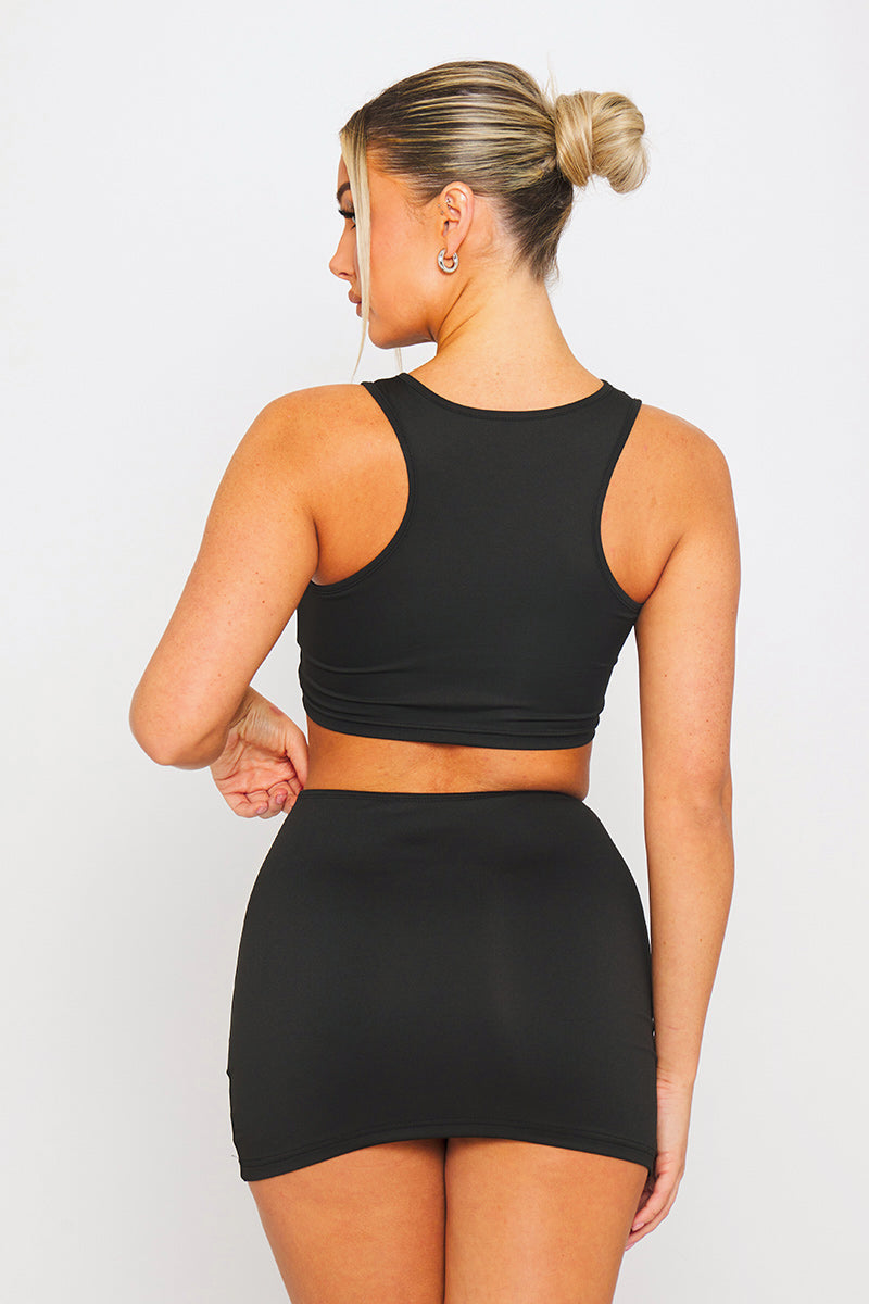 Black Cut Out Buckle Detail Crop Top & Mini Skirt Co-Ord