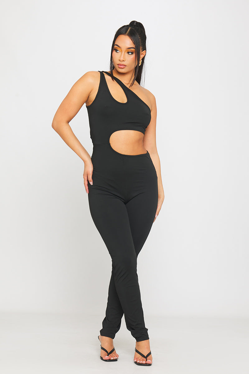 Black Cut Out One Shoulder Asymmetric Jumpsuit