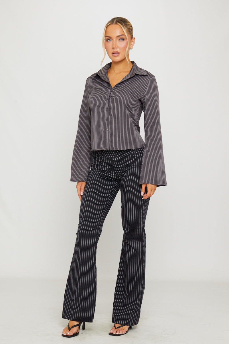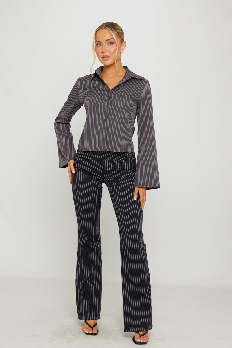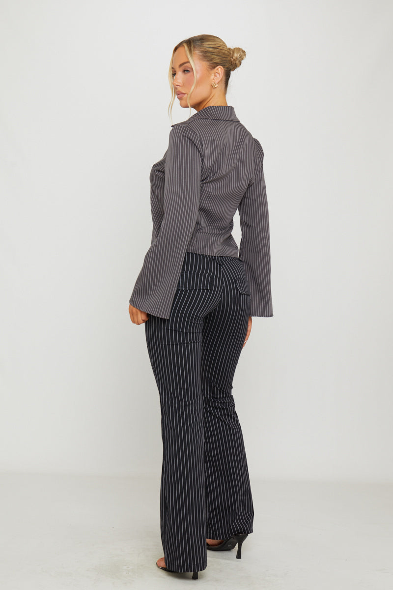 Black Pin Stripe Flare Trousers