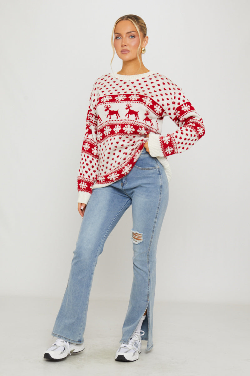 Cream Knitted Snowflake Reindeer Christmas Jumper